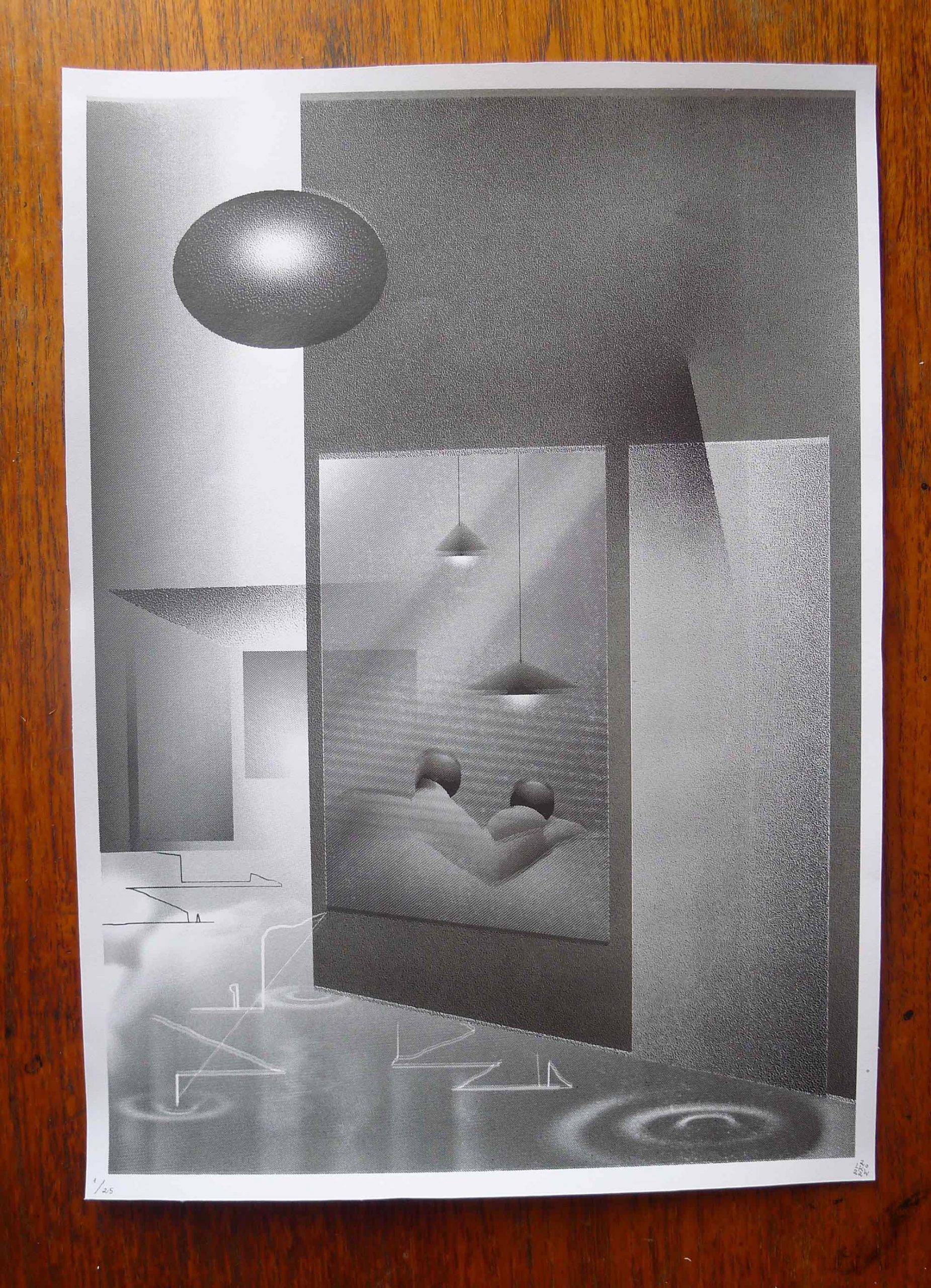 3 shades of silver on 200g munken paper, 34,5cm x 48cm, limited edition of 25, signed and numbered.